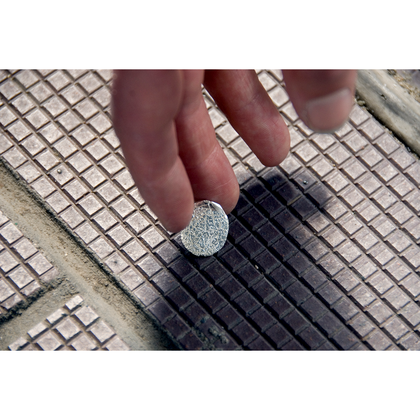 Silver casts of squashed gum lifted from the pavements of South London’s Brandon Estate were cast in Hatton Garden. A number of these tiny sculptural works were distributed around the site to be found by curious passersby at the Sticky Silver track Barbican performances.