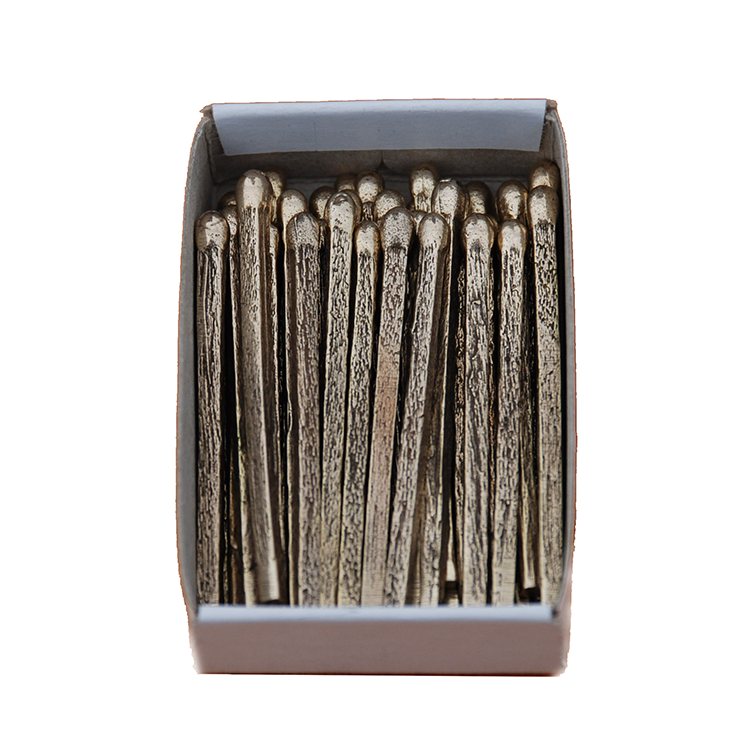 A box of matches cast in bronze, distributed at Bearpits + Landmines events.